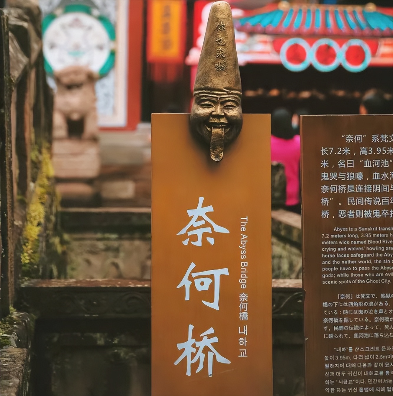下次,来丰都旅游吧:去看看长江的浩浩荡荡,去茶馆听听鬼市的说书,去走走奈何桥,喝一碗孟婆汤,拿着判官笔自己拍个照,买一个“黑白无常”的钥匙扣。
