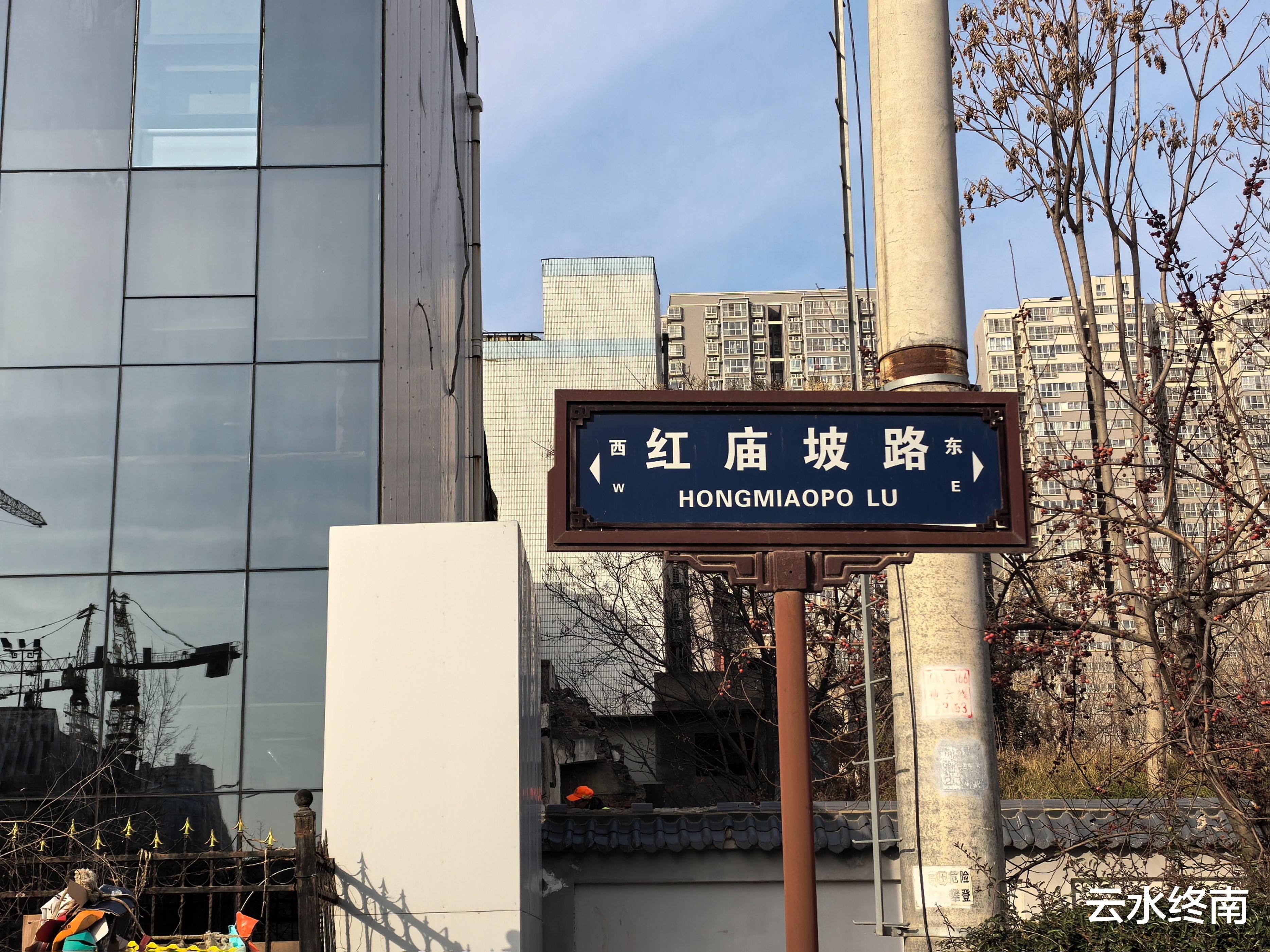 因为城市建设,现在红庙坡那个“坡”已经不明显了,红庙坡路南的昊天观门脸有些简陋,旁边就是红庙坡回迁的高楼万福家园。