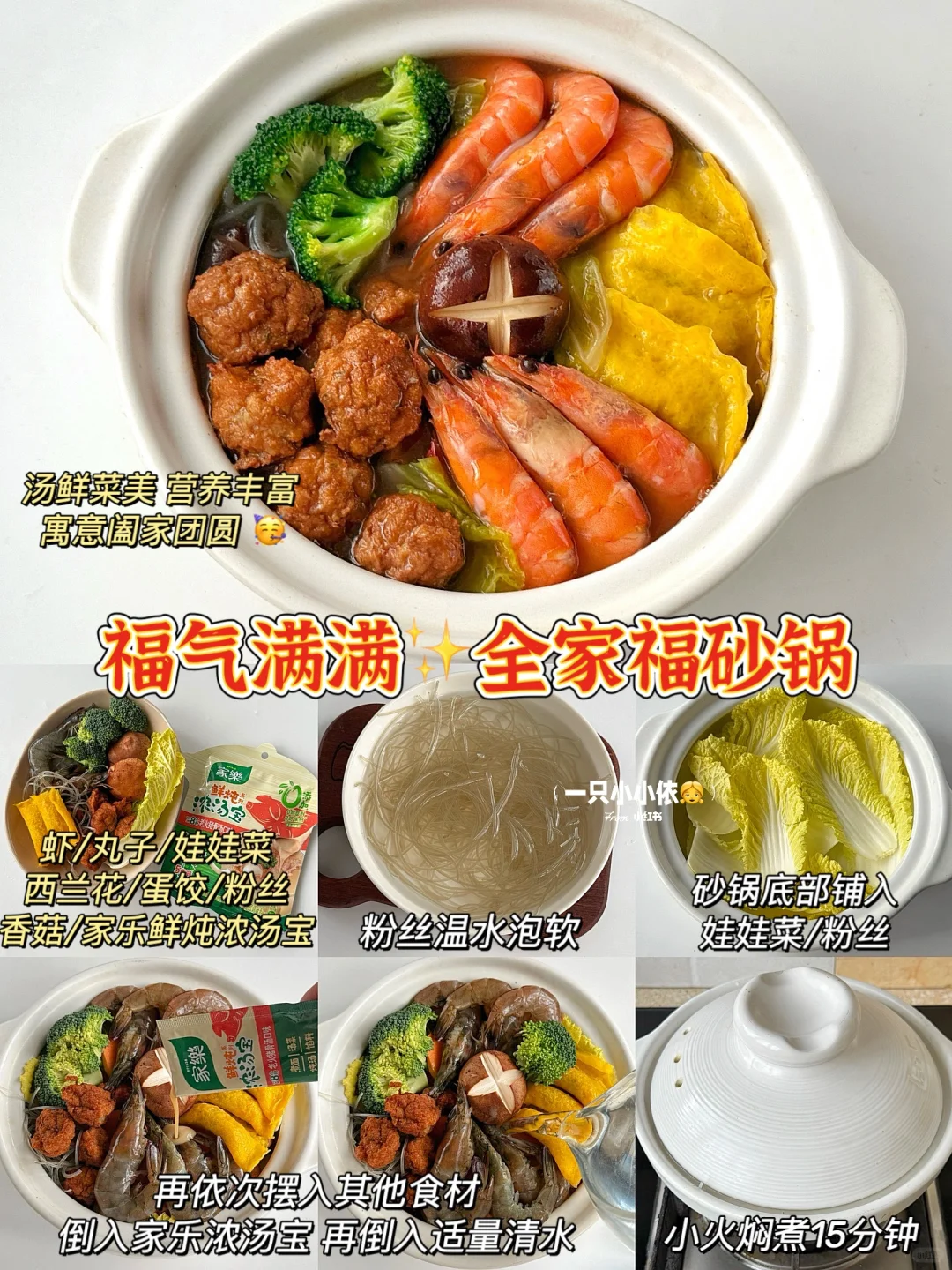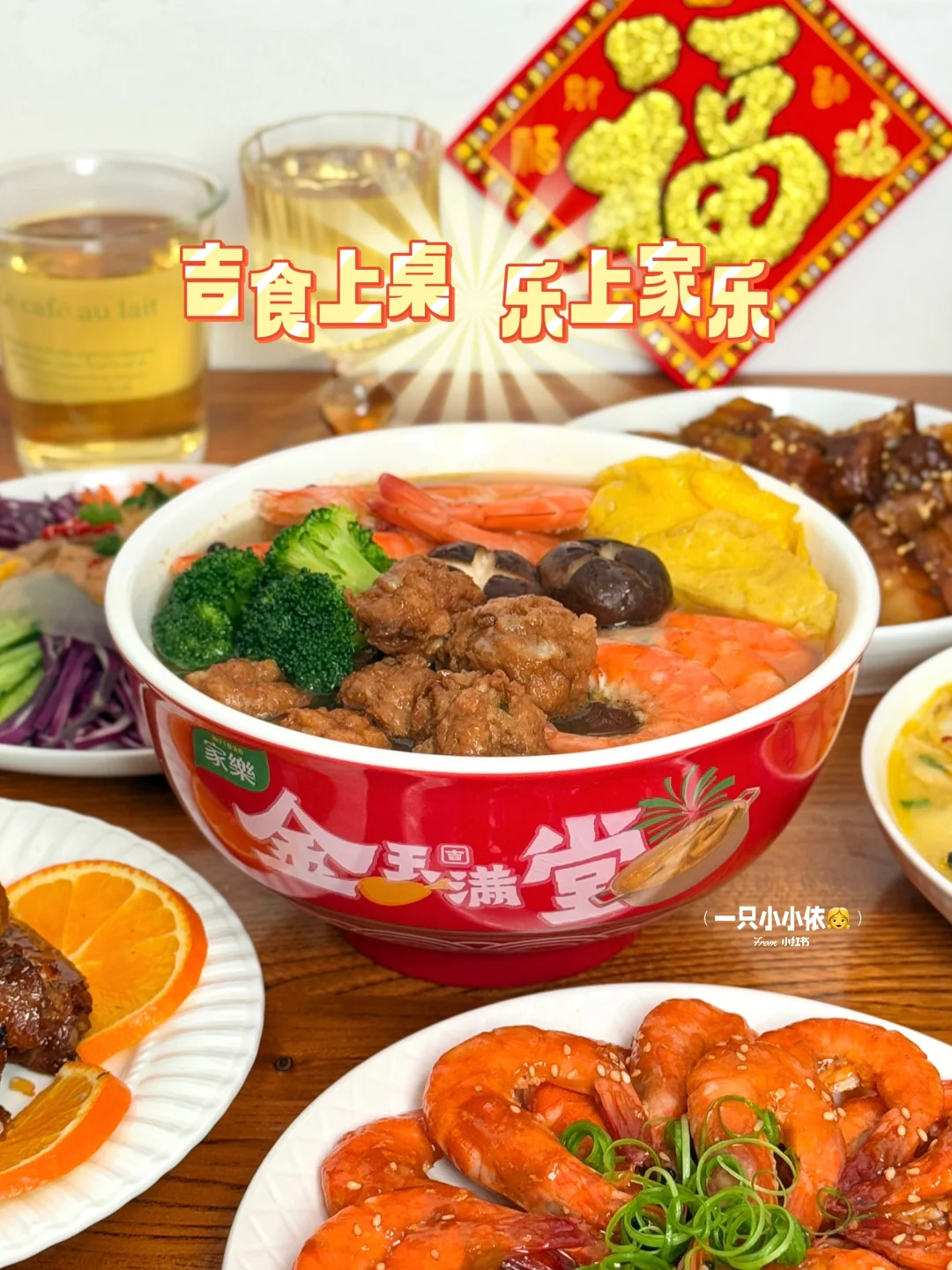 齐得隆咚呛🧨又是一年除夕夜,年轻饭清单都准备好了吗?整理了6️⃣道高颜值菜谱,都是北年夜饭的经典菜,营养又美好,简单好上手,大人孩子都喜欢~ · ——✨6道年夜饭菜谱制作过程✨—— 🍲福气满满:全家福砂锅 🔥鸿运当头:红烧肉鹌鹑蛋 🌈五福临门:五彩大拉皮 ✨金玉满堂:酸汤鱼片 🍤红红火火:茄汁大虾 🍊橙心如翼:橙香鸡翅 • ✅食材及制作方法都在图片上啦,有不明白的姐妹欢迎举手提问~ · 🏮除夕夜为家人准备一桌团圆饭,简直是一年之中最幸福的事🥳为了避免除夕夜手忙脚乱,提前从永辉超市囤好了超多的生鲜肉类都超级新鲜🦐🥩还有,家乐的各种各样的调味料这可是五星大厨都会pick的神仙调料品牌👏👏帮我轻松搞定年夜饭大餐![飞吻R] · 🙋作为北方人,除夕夜砂锅不能少🍲放一颗鲜炖浓汤宝就能让味道瞬间飞升!5秒还原出8️⃣小时慢炖浓汤,只要有它打底,无论是蔬菜锅还是肉锅都能有滋有味😋平时做汤、调馅料都能用哦![斜眼R]吃腻了大鱼大肉,就想吃点清爽解腻的,家乐椒麻凉拌汁简直是凉拌菜的好CP🥗三重椒麻,两重轻辣,吃起来酸辣过瘾又不会太重口~ · 🐮酸汤肥牛酱更是简单到有手就会,烧开水下入鱼片或肥牛,就能5️⃣分钟还原餐厅级味道,酸汤好喝到一滴都不剩[吧唧R]桂花红烧酱也很爱,秘制调和味烧汁,清新鲜甜,不用费力炒糖色啦😎炒素菜经常会用到薄盐鸡精,减盐不减鲜味,纯正鸡鲜味,怪不得炒出来的菜如此鲜爽可口🥦 · 人间至味是团圆!家乐和永辉超市希望在这个春节你的餐桌可以乐上家乐[哇R] ·
