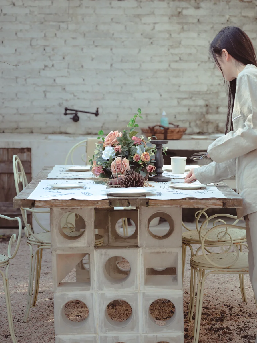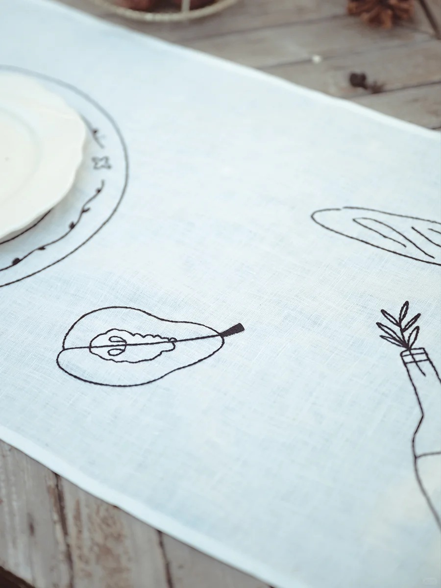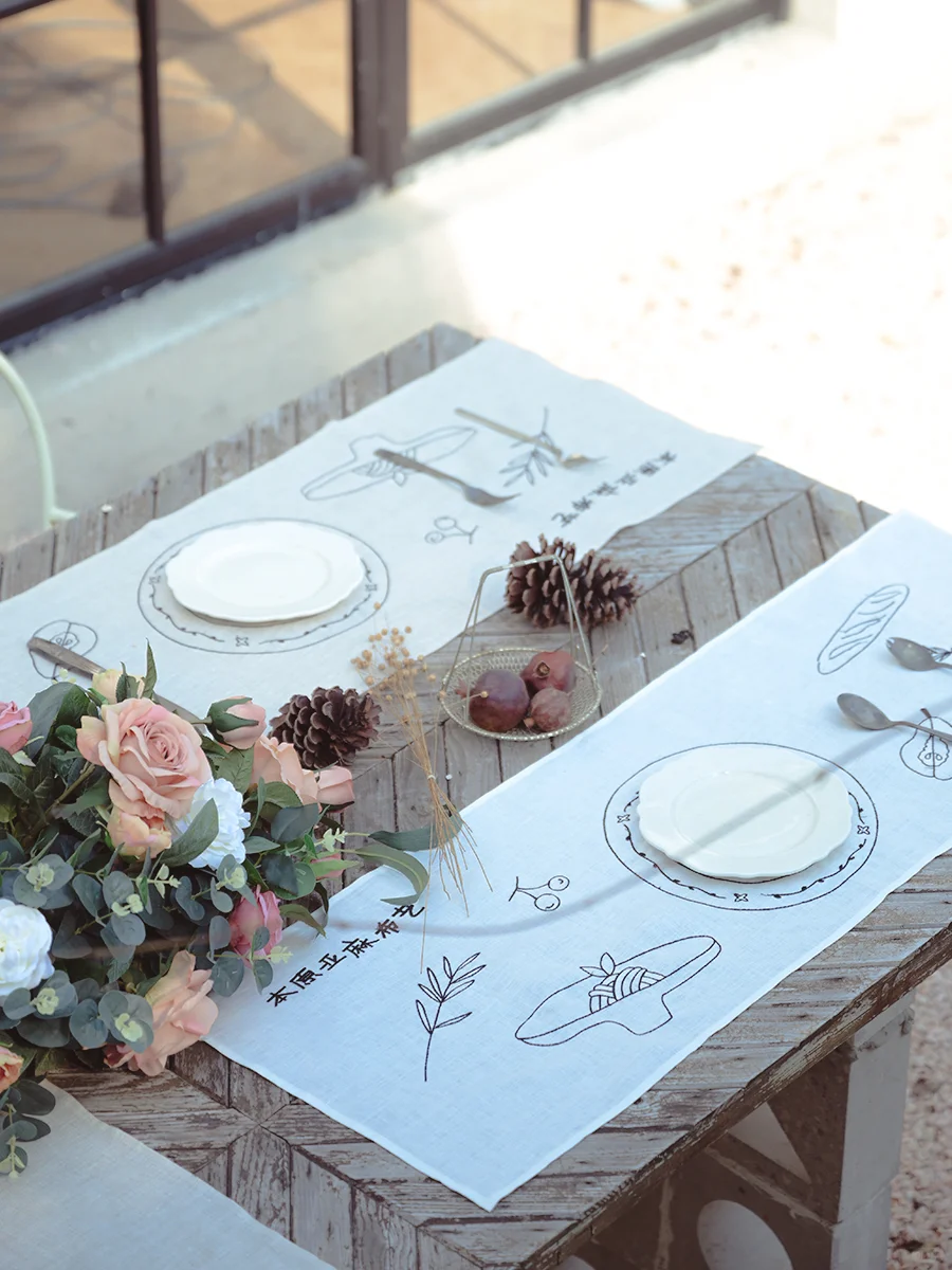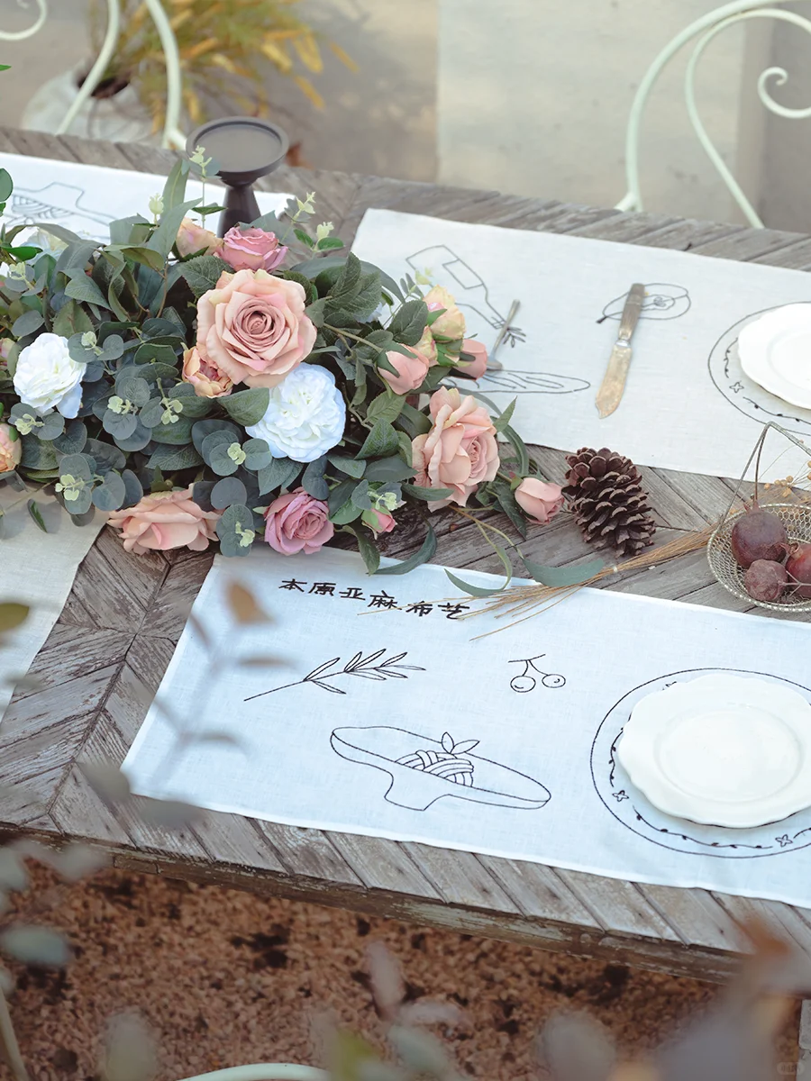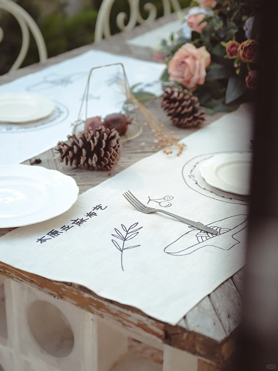 餐桌布置丨纯亚麻布艺丨绣花桌布