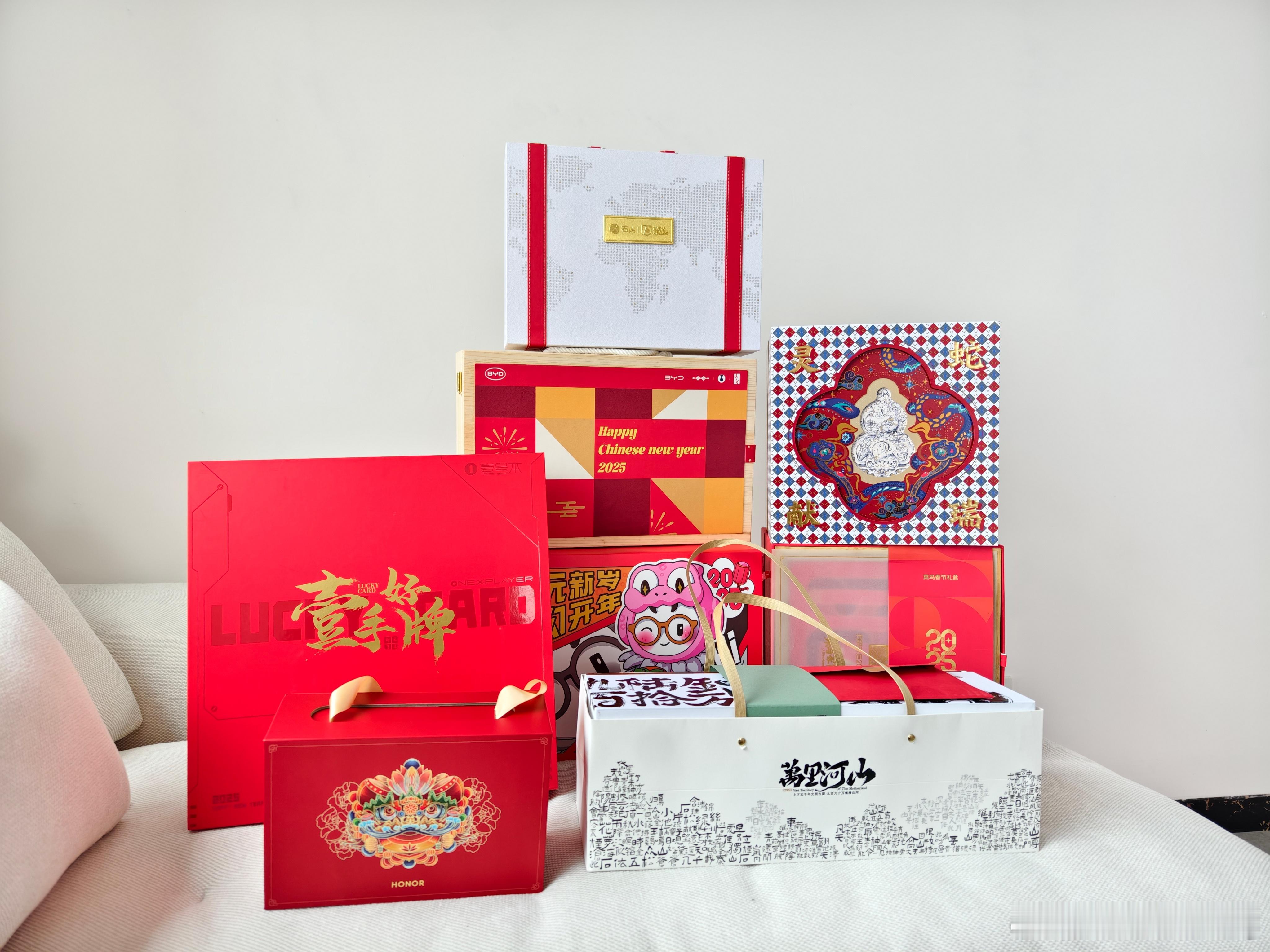 感谢华为、OPPO、vivo、荣耀、比亚迪、小鹏、一本堂、菜鸟、石头科技(排名不分先后)寄来的春节礼盒~