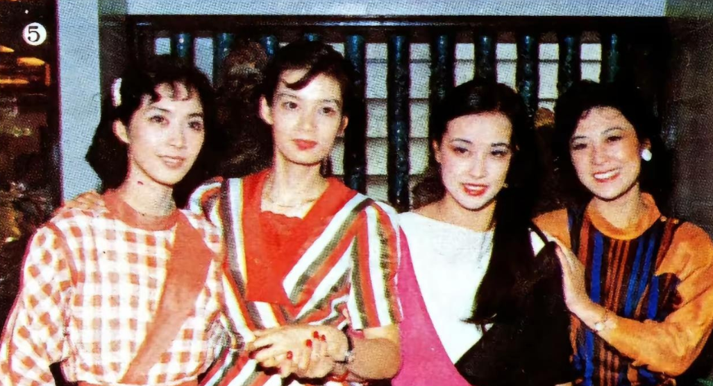 1984年,代表中国内地电影访问新加坡的四位女演员合影,第一张感觉好青涩呀,后两