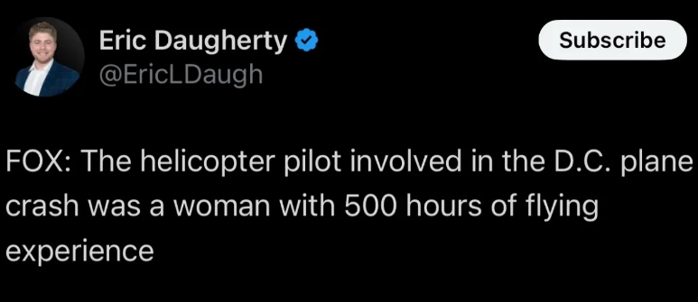 美国军方公布了肇事黑鹰直升机的三名飞行员中的两名男性飞行员的名字,却以“家属要求”为由拒绝公布第三人的名字。愤怒的美国网民开始自发人肉此人,目前网传ta是一个靠着dei进入空军的女飞行员,飞行时间仅有500小时,却驾驶上了黑鹰。而特朗普干脆暗示她是故意冲撞客机的。