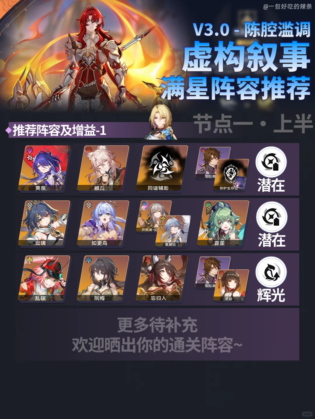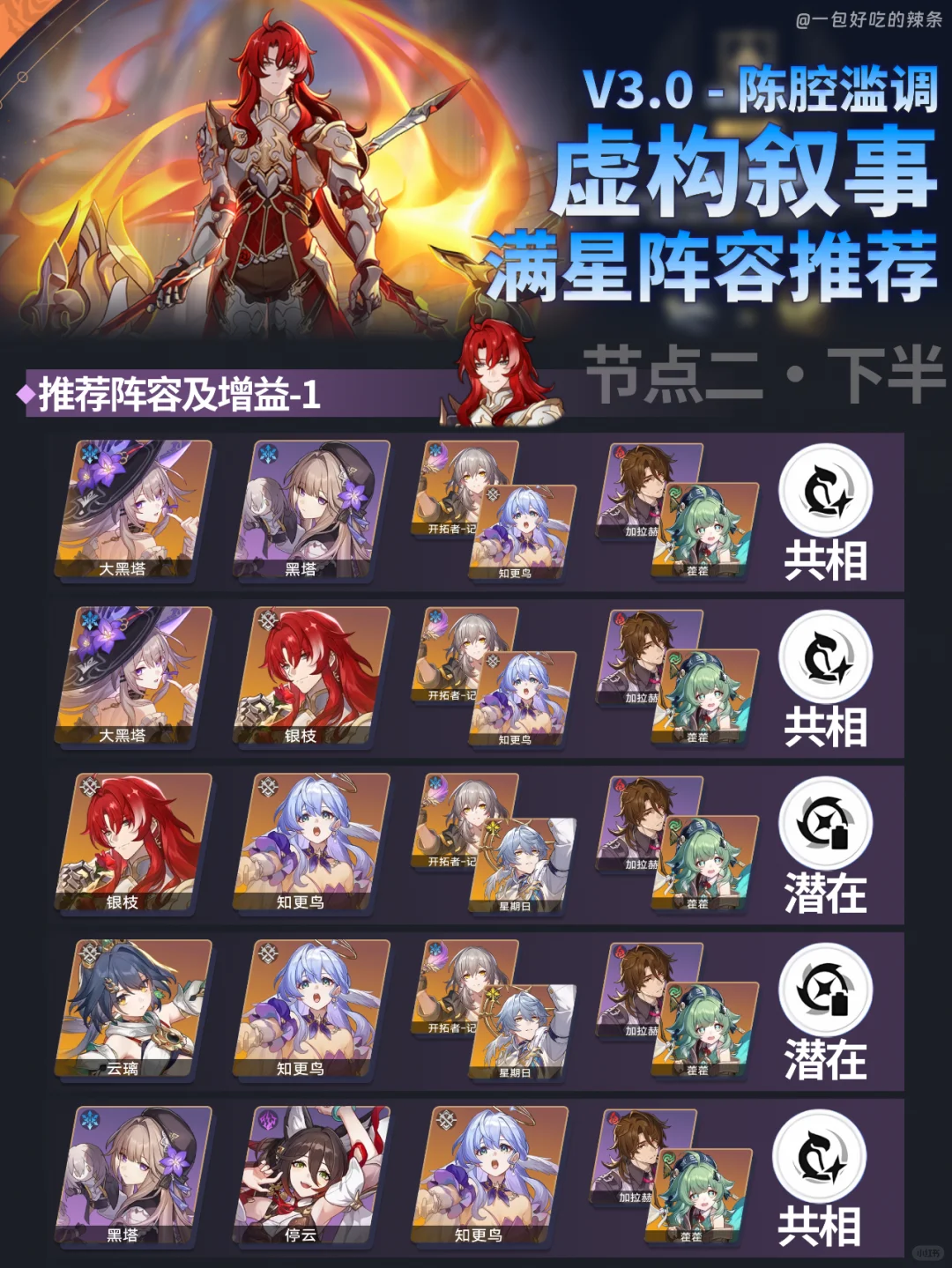 大家好,这里是辣条~ 本期是3.0的虚构叙事的阵容推荐