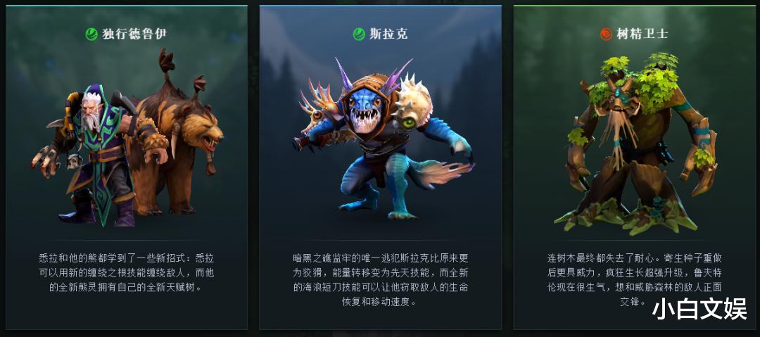 7.40版本迎来了大量改动,独行德鲁伊、斯拉克、树精卫士等迎来重做,独行德鲁伊有新缠绕之根技能,熊灵增加新的天赋树;斯拉克能量转移变为先天技能,新增海浪短刀技能还能窃取敌方英雄的生命回复和移速;树精卫士寄生种子重做,疯狂生长迎来升级。