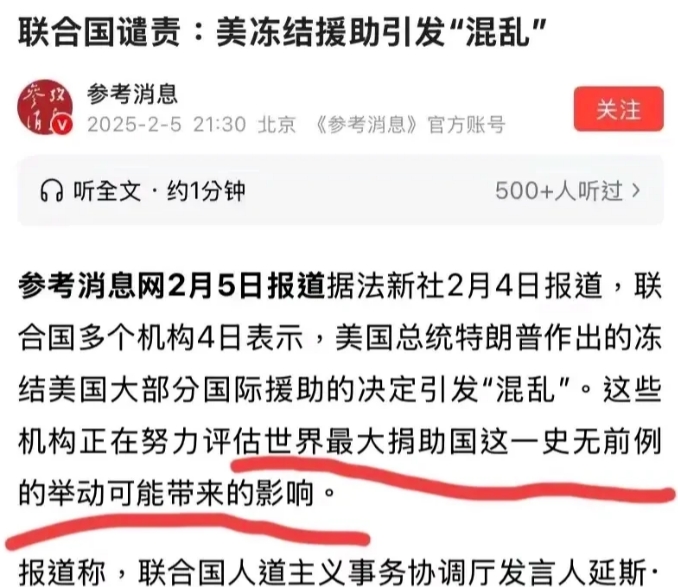联合国谴责美国:冻结国际援助,引发世界“混乱”!国际机构正在评估,这个世界最大对外援助国,这个史无前例的举动,对世界带来的影响。