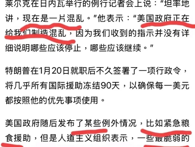 4.除紧急粮食援助,扯淡援助都停了。 5.脆弱人群受影响。这些人群指哪些? 6.是否在告诉世界,美国实在太重要?