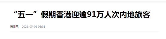 1、海外网:“五一”假期香港迎逾91万人次内地旅客
