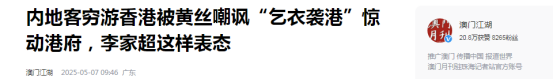 3、澳门江湖:内地客穷游香港被黄丝嘲讽“乞衣袭港”惊动港府,李家超这样表态