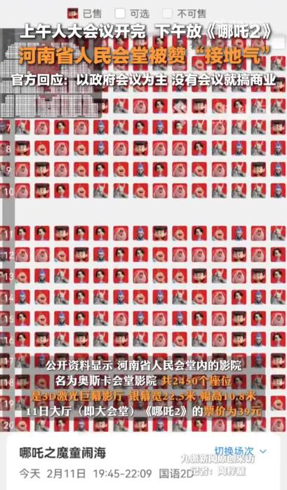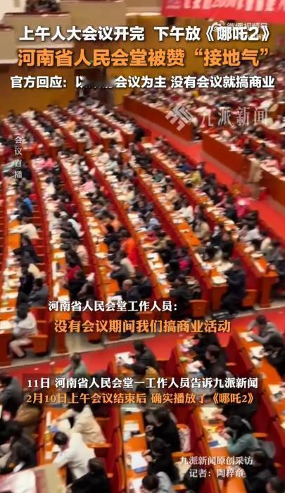 “这样的政府谁不爱?”郑州,河南省人民会堂上午还在开政府大会,下午就放起了《哪吒2》,有当地网友称:“一张电影票才39块钱,还免费送可乐和爆米花!” 春节期间,一场别开生面的观影体验在河南省人民会堂上演,引发了社会各界的广泛关注。这座庄严肃穆的政府会议场所,在完成其主要职能后,摇身一变成为了热门电影《哪吒2》的放映地点,为当地居民带来了一次难忘的文化盛宴。 2月10日,河南省人民会堂经历了一次前所未有的转变。上午,政府要员们还在此处进行重要会议;而到了下午,这里就变身成为了一个巨大的电影院。 3D激光巨幕的璀璨光影取代了严肃的会议氛围,2450个座位迎来了热情的观众。这种反差不仅令人惊叹,更体现了公共资源利用的创新思维。 与普通影院相比,人民会堂的票价更加亲民。39元的票价不仅吸引了众多观众,也让这个春节的文化消费多了一份实惠。巨大的观影空间和先进的放映设备,为观众提供了独特的视听享受,让《哪吒2》的魔幻世界更加栩栩如生。 这一举措得到了多数网友的赞同。他们认为,这不仅盘活了闲置资源,还拉近了政府与民众的距离。在这个特殊的场所观影,仿佛穿越回了露天电影的年代,唤起了许多人的集体回忆。 人民会堂工作人员的回应体现了政府机构的灵活性。他们表示,会堂仍以举办政府会议为主,只是在空闲时段开展商业活动。这种做法不仅满足了春节期间高涨的观影需求,也展现了政府服务意识的提升。 河南省人民会堂的这次尝试,犹如一颗石子投入平静的湖面,激起了层层涟漪。它不仅为当地居民提供了一次独特的文化体验,更是政府与民众互动的新尝试。 河南省人民会堂的这次转变,无疑为这些问题提供了一个富有启发性的答案。它展示了传统与创新的完美结合,也诠释了“人民”二字的深刻含义。