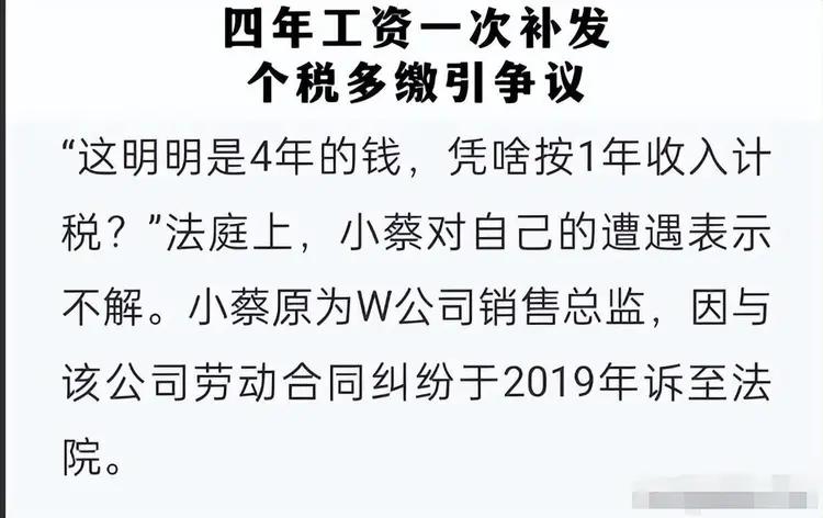这场税单拉锯战里藏着个黑色幽默:公司拖欠四年工资时当老赖,补发时倒成了纳税急先锋。仲裁书上明晃晃的"2017-2020年度工资及赔偿金",到了税务局系统里就成了2023年度的"综合所得"。这就好比把四年的西北风攒成一碗喝,还要按满汉全席的标准收伙食费。老蔡的代理律师举着计算器现场教学:如果拆分成四年计税,应纳税额28万;打包成一年计算,32.7万!多出的4.7万差价,够给儿子报三年奥数班,能买1800杯蜜雪冰城,或者支付老婆大人连续488天"你看看人家老公"的沉默成本。