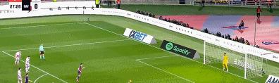 莱万站到了点球点前,毫不犹豫推射破门。