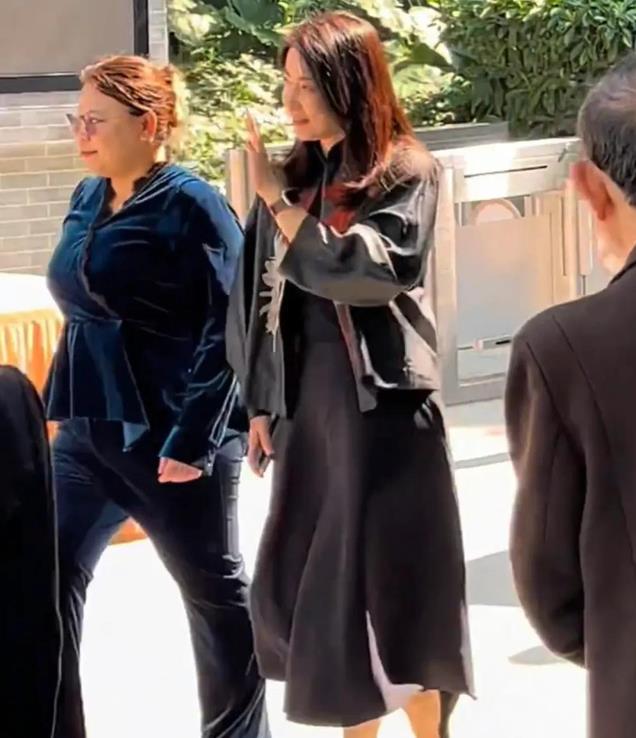 郭晶晶这次穿着一袭黑裙子,而外面也搭配着一件新中式外套,脚踩一双黑色高跟鞋。