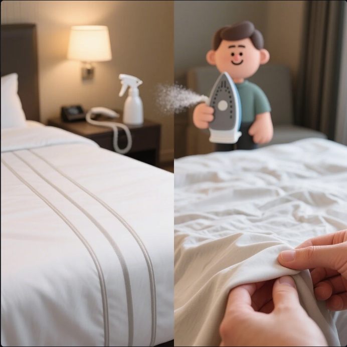 折痕追踪术:新更换的床单被套经高温熨烫后,内侧会保留三道笔直折痕,使用过的因人体压睡折痕模糊;