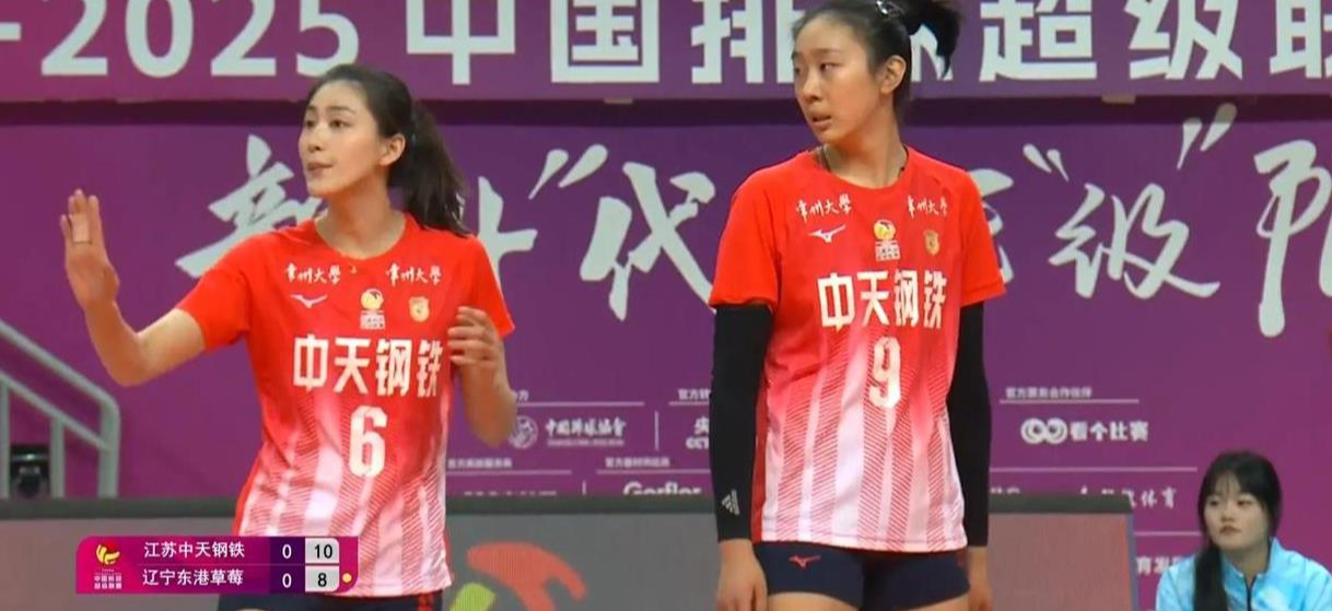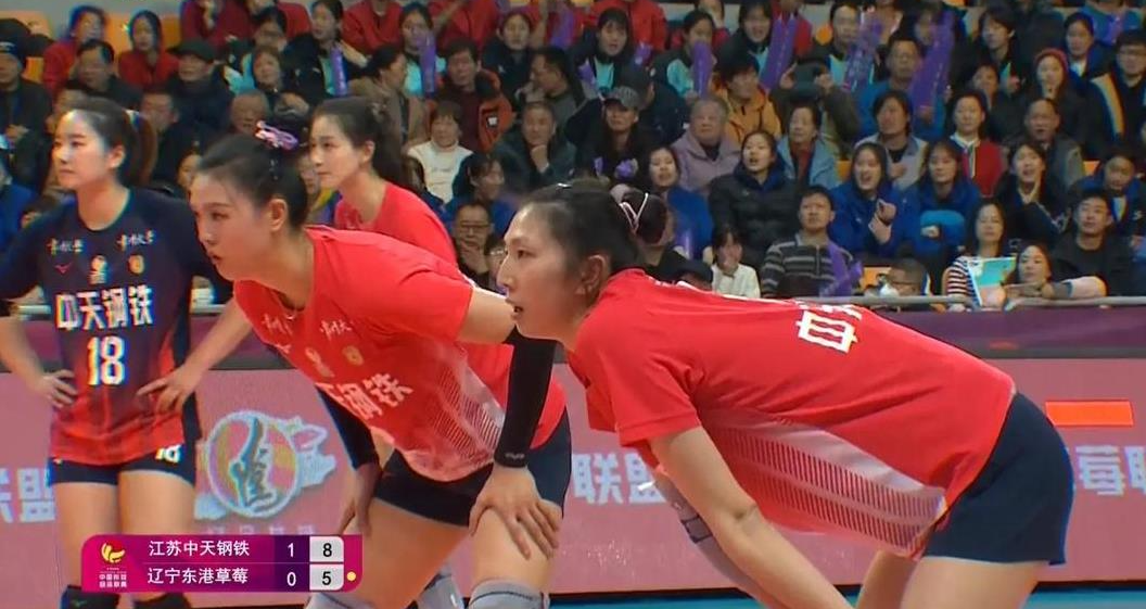 张常宁发球辽宁仍溃败赵勇叫了个暂停,暂停过后张常宁继续发球,辽宁队这次进攻终于打过去了。龚翔宇的一传到位了,吴梦洁在四号位来了个大斜线扣球,得分!江苏队的防守站位和判断都挺到位的,全队多点开花。他们通过防守反击也拿了不少分。辽宁队的一传顶不住压力,进攻也打不开局面,球总是扣不死。第二局江苏女排以25-12又赢了一局。