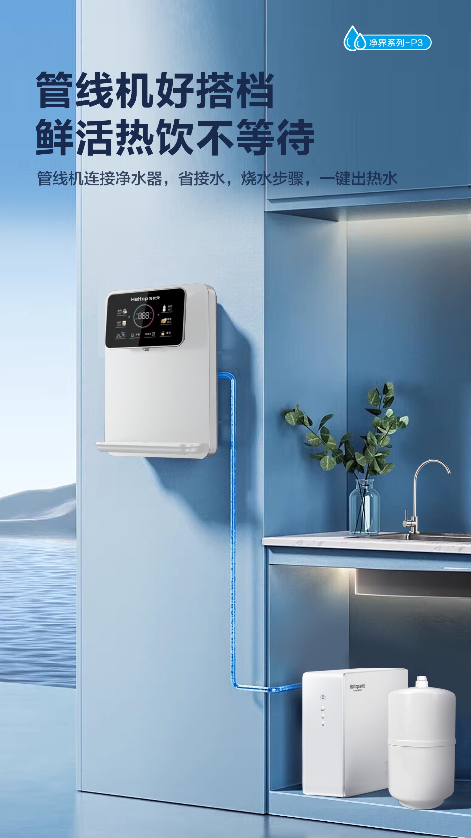 海状元净界 P4 智能直饮机,搭载 RO 反渗透核心技术,可高效滤除水中重金属与有害污染物,产出纯净无杂质的健康好水。