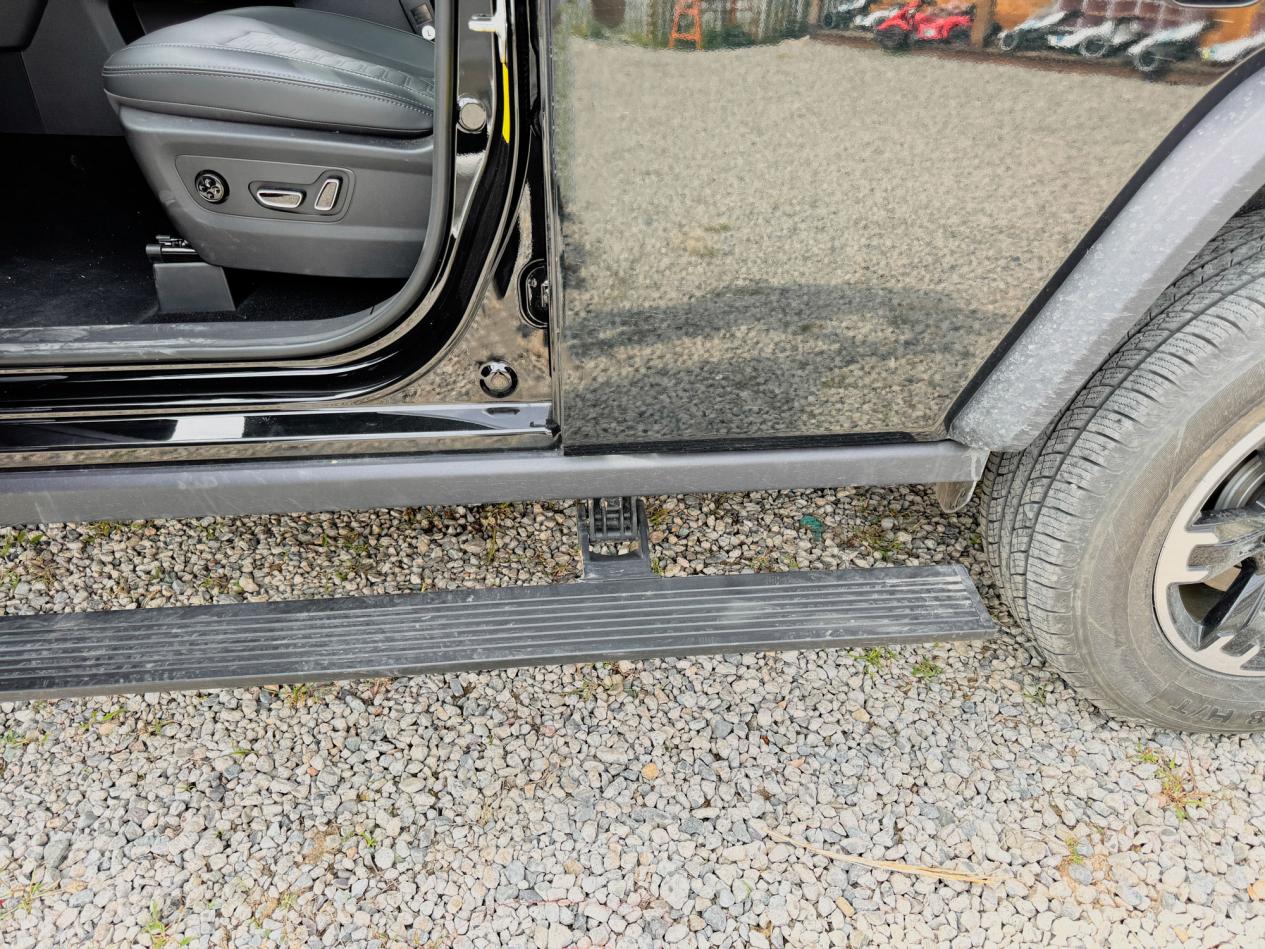 它虽然是个方盒子,但是车里的空间也没有很吝啬,后排空间坐下三个人也不会挤,车里的储物空间不少,尾箱里面还有隐藏式储物格,对了,这车还配备了电动的脚踏板,家里有小孩儿的也不用担心上下的问题。
