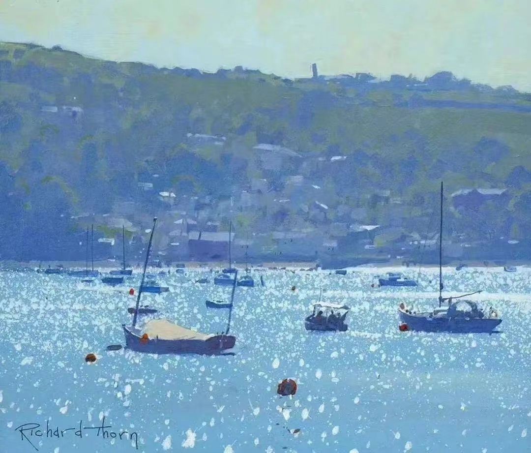 夏日之海跳跃的光~一英国艺术家Richard Thorn生于海边的缘故,海洋和海景就成了他永恒的绘画主题。強烈明快的色彩