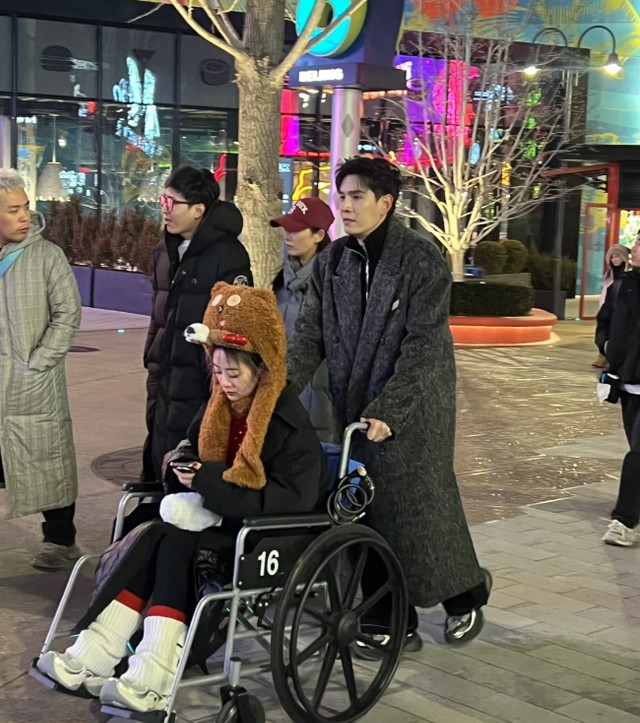 玩到最后,小李琳应该是走累了,经超还专门租了个轮椅,宠溺的推着媳妇走。