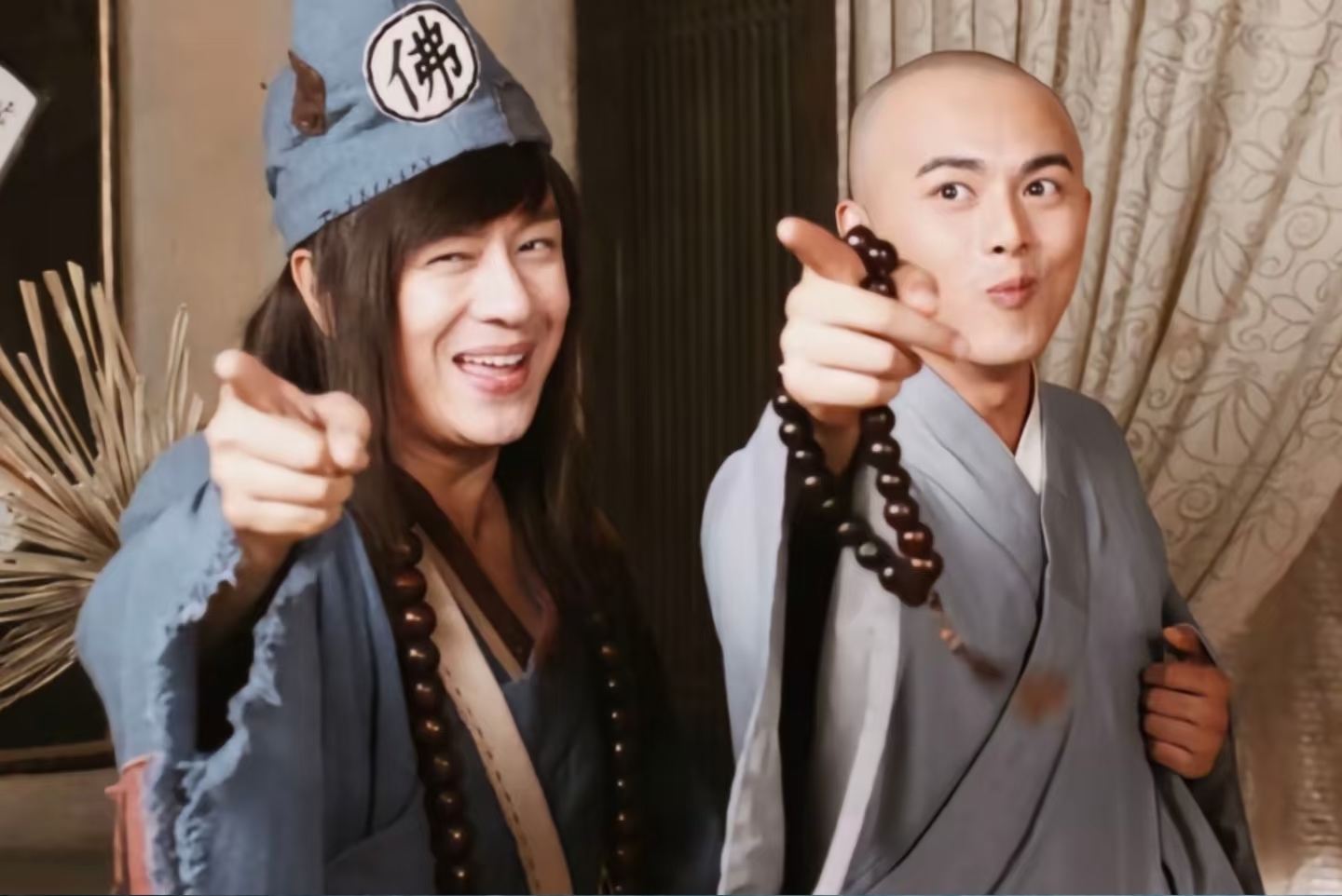 记得在这部剧中,叶祖新饰演的必清就是个憨萌憨萌的小和尚,光头圆脸蛋,整天跟在广亮师叔屁股后面。