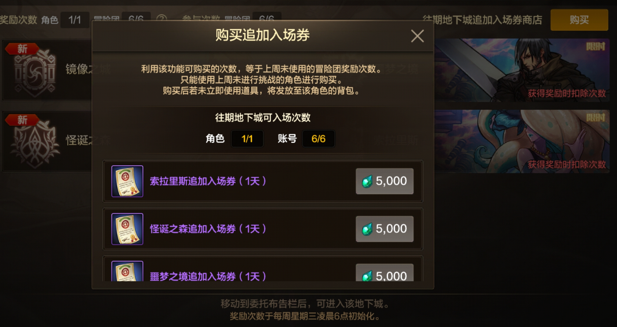 另外这次更新除了惯例的维护补偿之外,还有一个特别的补偿,那就是上周没有通关周本的玩家,这次25号可以花五千泰拉购买到周本追加入场券。这样大家可以多打一次周本了,注意这个入场券购买后只有一天有效期,如果大家抗魔值还没有达到15.2万的话最好先别领取这补偿。