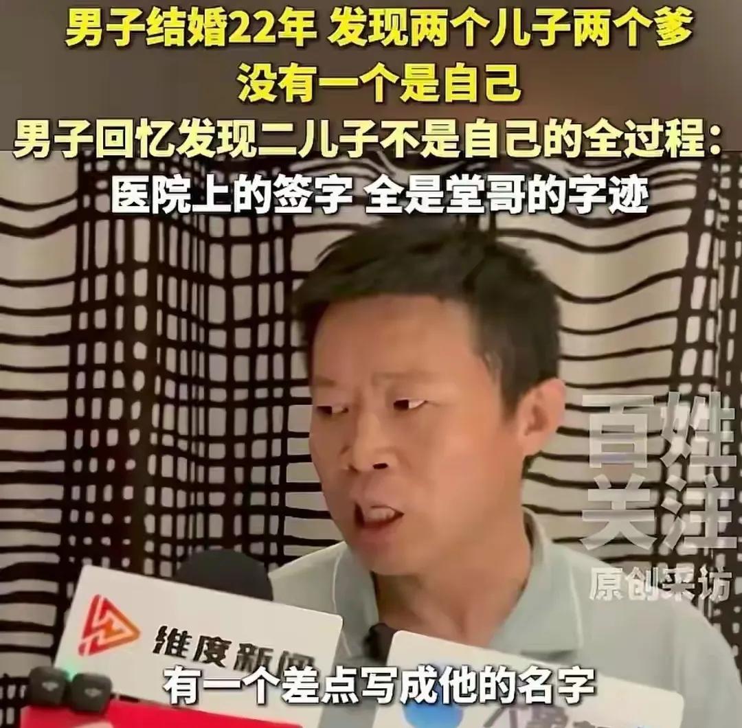 淄博男子结婚22年发现2个儿子非亲生案开庭。据悉,该事件的男主角姜先生离婚的原因是前妻从2022年开始基本不回家了,就连小儿子出生自己都不知道,面对流言蜚语,姜先生于是做了亲子鉴定,发现两个儿子都不是亲生的,大儿子是与前妻前村的村书记所生!小儿子却是和自己的堂哥所生!