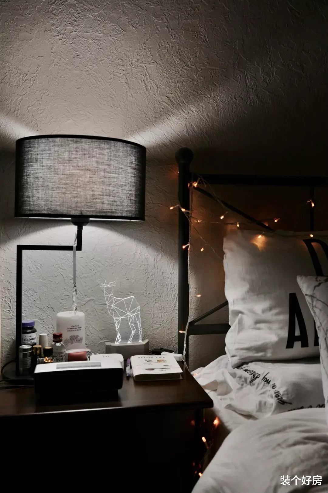 另外,这里用各种零散的光源,营造出温馨的样子,即使一个人住,也不显孤单。