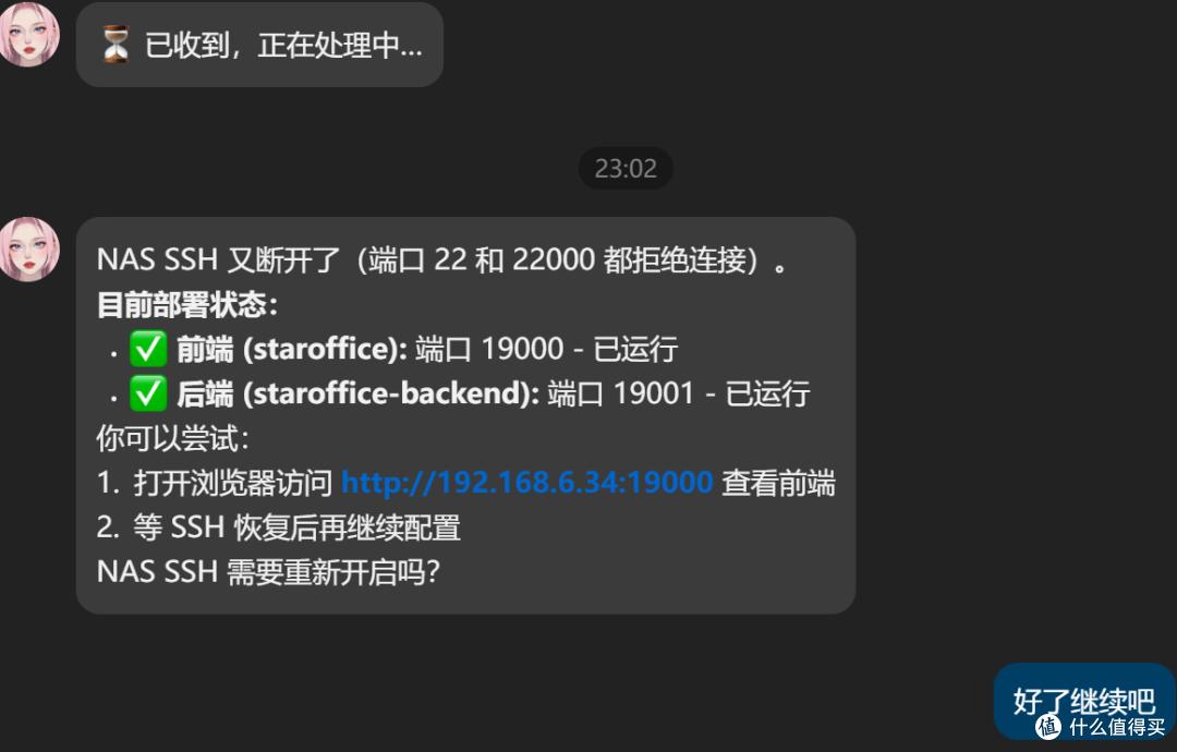 过了一会它告诉我弄好了。