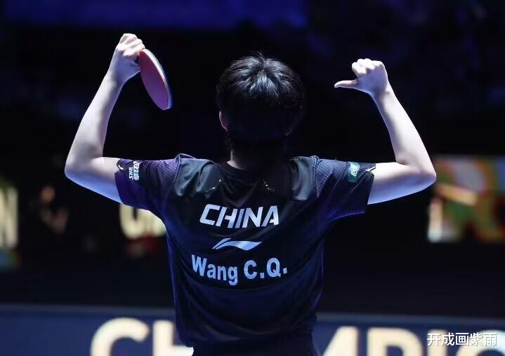 除了师徒互动的庆祝,王楚钦还高举双臂指向背后"China"字样庆祝,王楚钦纵情呐喊,全场观众也齐声高呼"王楚钦你最棒"。
