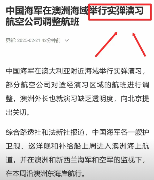澳大利亚飞机刚来西沙群岛挑衅! 现在就被中国卷了,大快人心! 土澳最近不是跳的很欢嘛? 2月13号飞机来西沙挑衅,2月21号055编队过去在塔斯曼海进行实弹演习,地点距离悉尼330海里,限制高度45000英尺,直插土澳肺管子!! 土澳新闻报道只敢说此区域有中国舰队演习,提醒民航注意航空安全,都没敢提055编队,有种不知所措的狼狈 有人说330海里,不是很远吗,有什么可怕的? 基础知识: 055编队包含055驱逐舰,054A护卫舰,903补给舰等 055驱逐舰有112垂发单元,配备鹰击21高超音速反舰导弹,可打击最大飞行距离1500公里,最高300公里空中目标,最大飞行速度10马赫,330海里用时只要180秒,也就是3分钟左右到悉尼!!!