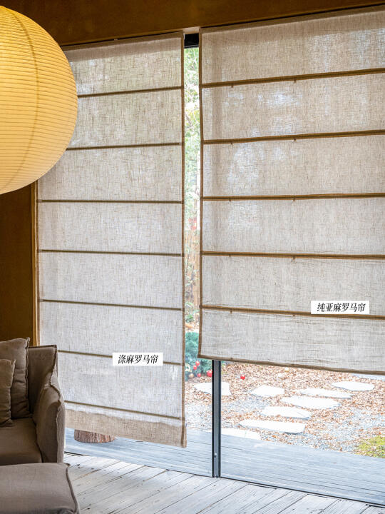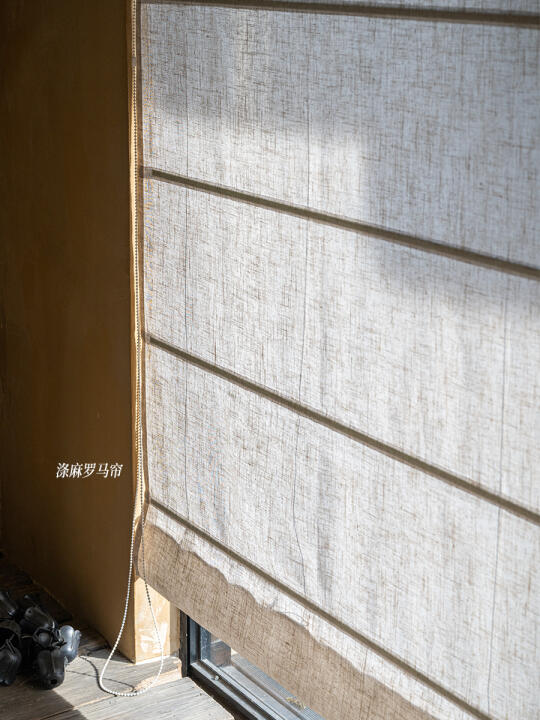 实拍对比:涤麻罗马帘 🆚 纯亚麻罗马帘
