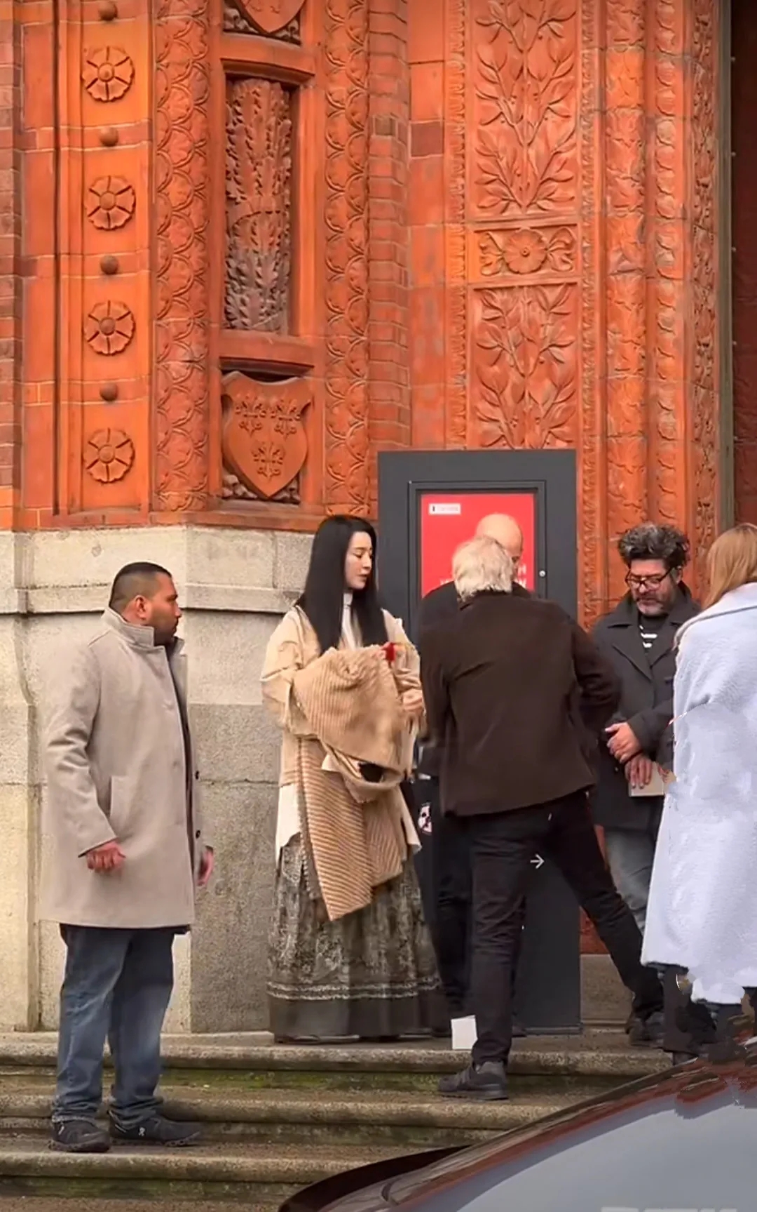 范冰冰在国外街头与老外闲聊被网友偶遇,看看范爷在国外还是拥有众多粉丝的,很受欢迎,范冰冰一头乌黑秀发,垂在胸前,抱着一件呢子横纹风衣,下穿灰色长裙,又美又高雅,这位平头壮汉老外看来真心喜欢范爷,眼睛一直在范冰冰身上,既羞涩又爱慕,他也被范冰冰美貌吸引。