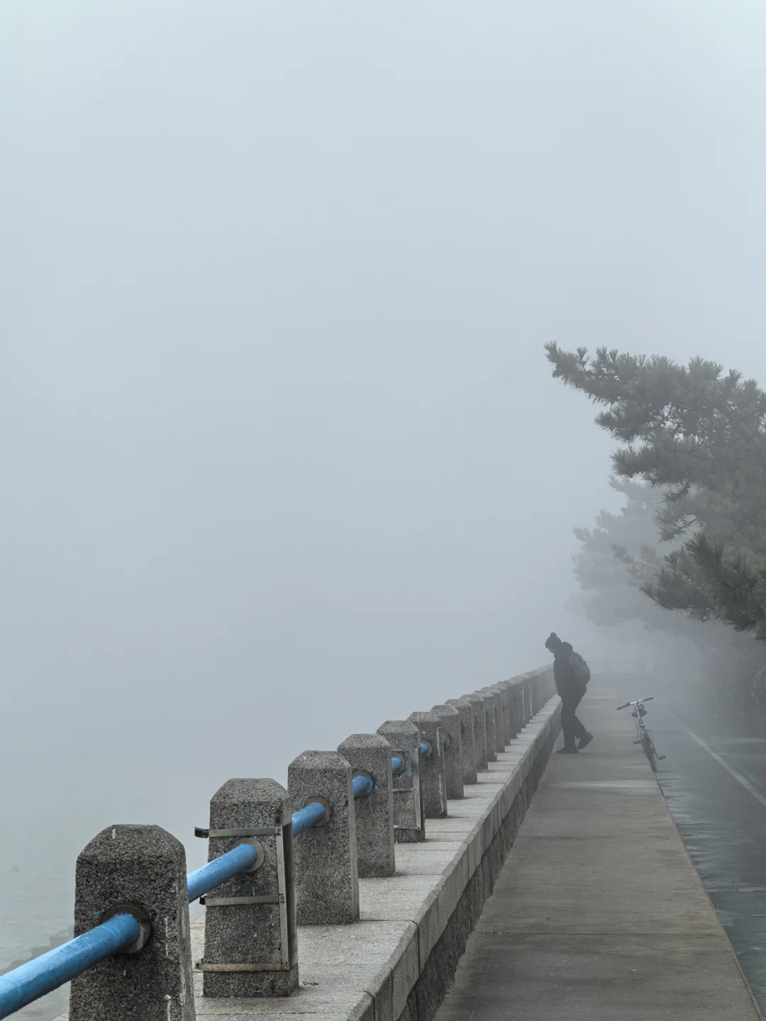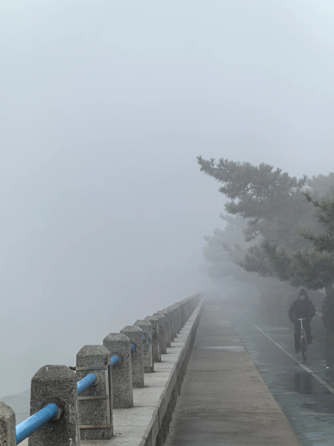 不冷 ,大雾 ,可以听见海鸥叫声。尽量避开青岛旅游[微笑R]