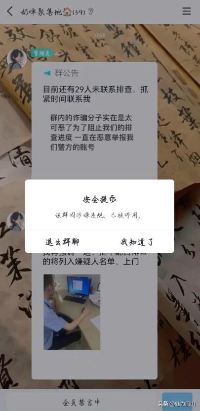 【眉山一人因“追星”被骗2.7万】 近年来,“饭圈文化”盛行 不少年轻人成为狂热的“追星迷” 在微信、QQ等社交平台加入各类追星群聊 期待了解每一次“爱豆”的活动 诈骗分子也盯着这些群聊 蠢蠢欲动 2月4日 王贝贝(化名)在家刷短视频时 有人私信给她一条信息 邀请她加入某明星应援群 声称进群能获得签名照片 并附有进群二维码 王贝贝看到签名照后心动不已 立即就扫码进群了 就在王贝贝进群十多分钟后 两位自称“警察”的人在群里发了一条信息说 “该群涉嫌‘诈骗粉丝’要对所有群成员进行调查” 接着“警察”就私聊王贝贝 会有“律师”联系她 让她配合调查 不久,一个自称“刘律师”的联系上王贝贝 要求王贝贝和他开启视频通话 以进行所谓的“排查” 其间,刘律师”以各种理由 要求王贝贝提供个人财务信息 并诱导她使用其爷爷的银行卡 及奶奶的微信钱包进行转账操作 王贝贝在恐慌和不安中 先后支出了17笔款项 共计被骗2.7万元人民币 目前,案件正在进一步侦办(来源:眉山公安)