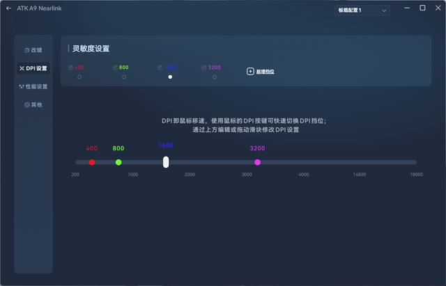 用户可以在驱动中设置 DPI 调节、回报率、自定义宏、按键与编程等一系列配置,并保存这些设置。