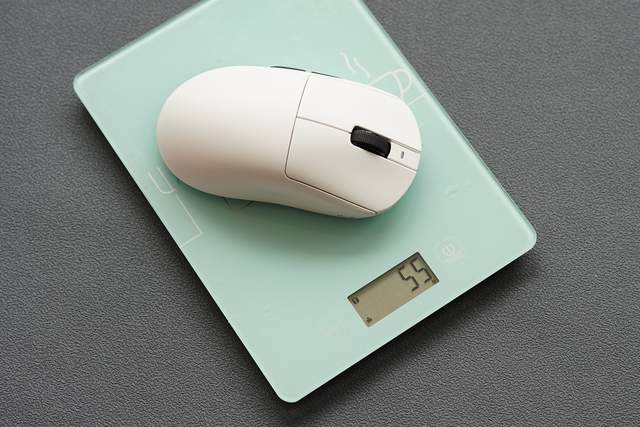 鼠标经测量其重量在 55g左右,不仅赋予了鼠标极佳的轻盈感,还使其在外观上显得简洁而优雅。