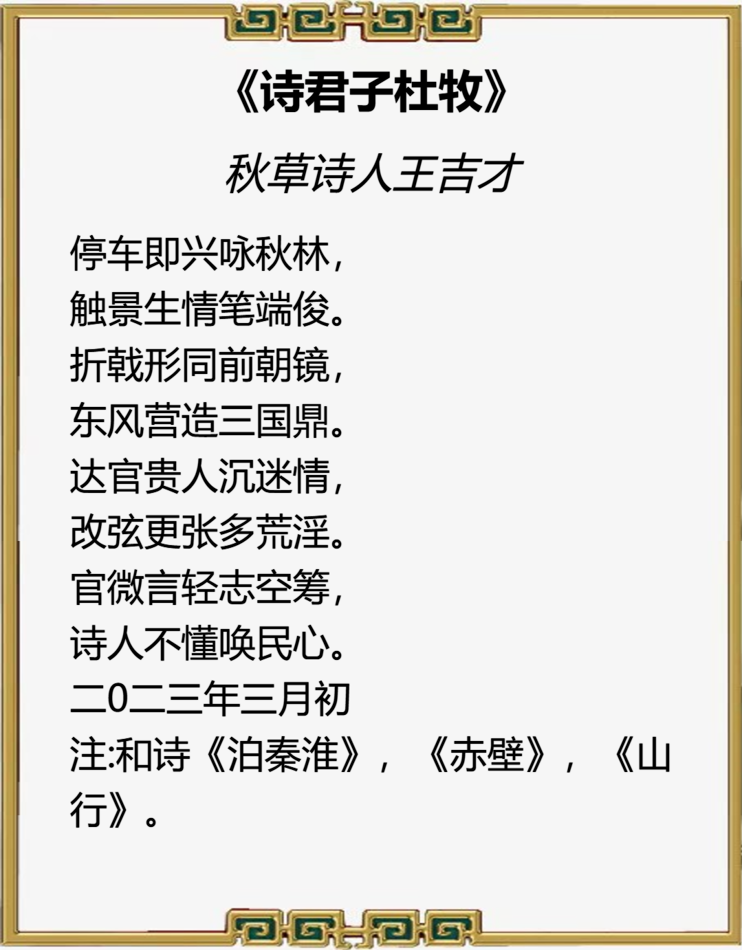 感叹中华悠长历史瑰宝之绚烂的同时,希望能为文化传承尽点绵薄之力。-秋草诗人王吉才