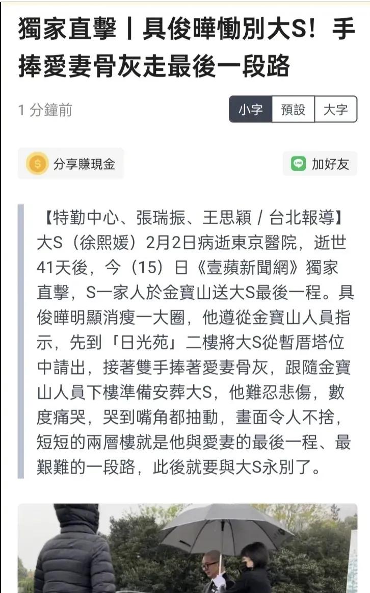 具俊晔的坚持,也让大S的身后事得以妥善处理。