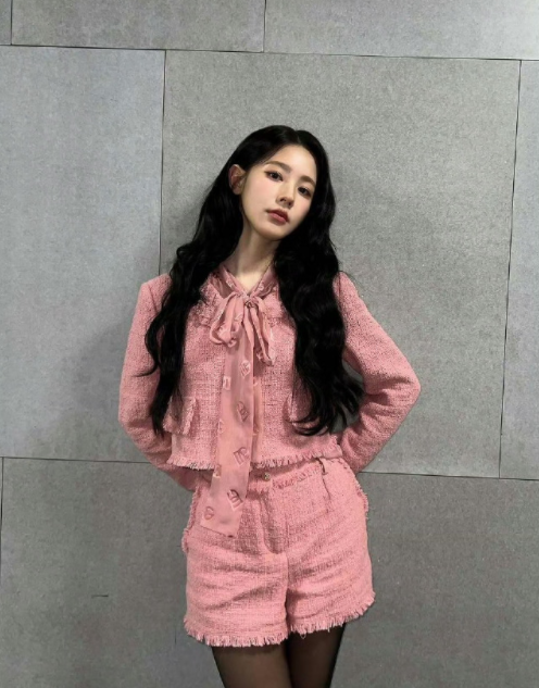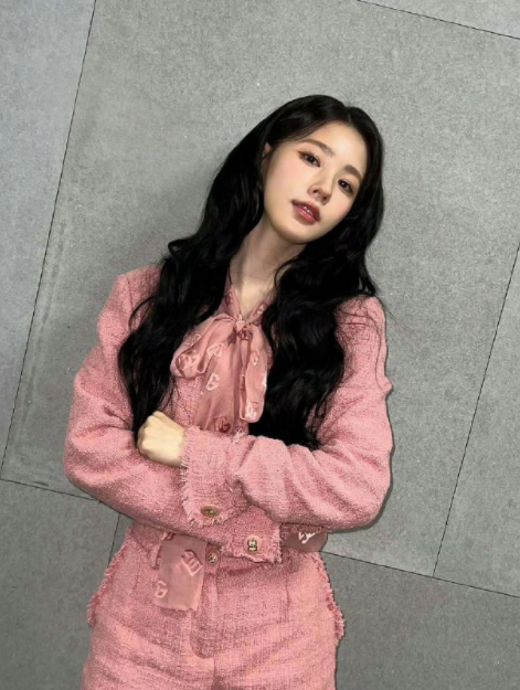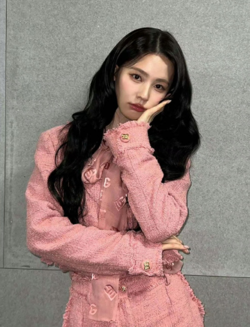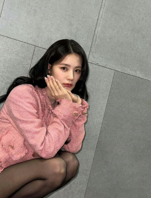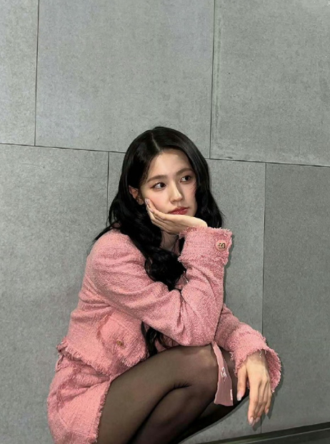 赵美延的粉色套装配黑丝,甜美纯辣,喜欢吗?