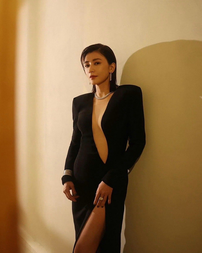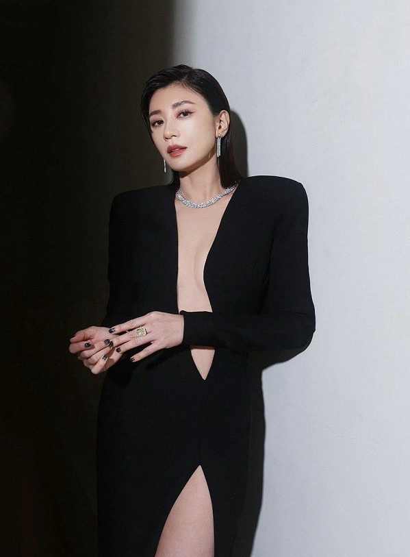 贾静雯的黑色深V礼服穿搭,相当有风范啊!