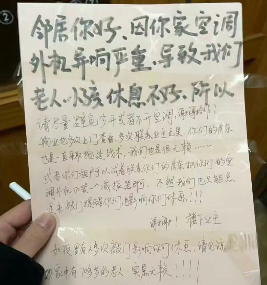 好名字可以让你的朋友更容易记住你。 6 2025-03-23 06:21 论说话的艺术,“老人小孩如何如何,所以我(邻居)掏钱,你能不能修或换一下外机?在这之前,能不能暂时先关一下空调”。如果邻居这么说,大多数人都会很配合,你态度好我态度也好,你态度不好我态度也不好。别拿少数自私的人杠,多数中国人还是很同情达理的,前提是邻居先拿出诚意,邻居掏钱换修的诚意。多数情况你只要表达出诚意,许多人甚至不用你真掏钱