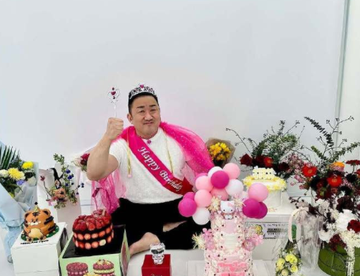 马东锡粉红公主生日照,反差感满满!