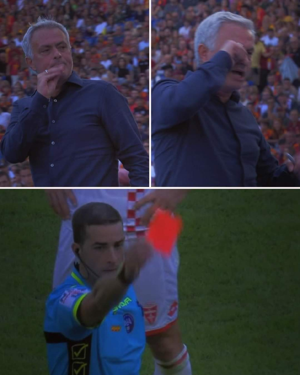 突然,穆里尼奥将手指放在嘴唇上,做出了一个闭嘴的手势。这个简单的动作,却像一颗深埋在人心深处的炸弹爆炸开来。被嘲讽的帕拉迪诺的情绪激动了起来,试图上前与穆里尼奥理论不休。而在这场激烈的争执中,可怜的蒙扎球队经理和罗马门将教练努诺-桑托斯纷纷吃到了红牌。
