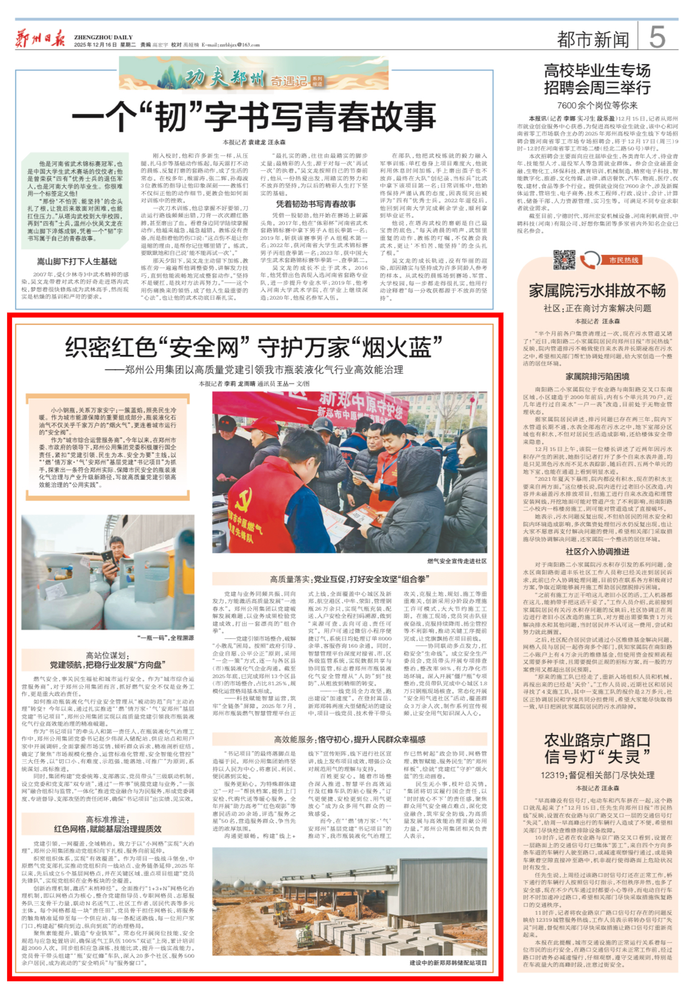 民生无小事,枝叶总关情。“集团将切实履行国企责任,以‘时时放心不下’的责任感,聚焦群众用气安全痛点难点,深化党业融合,筑牢安全防线,为高质量发展与高效能治理贡献公用力量。”郑州公用集团相关负责人表示。