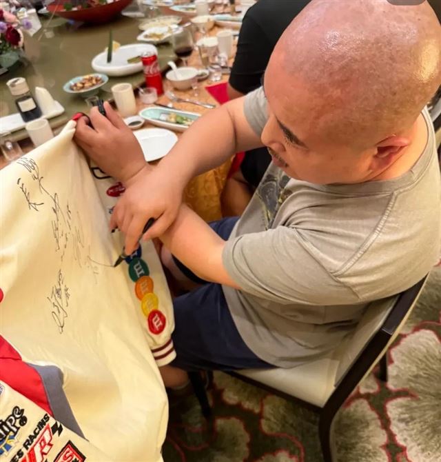 粉丝不仅得到了合影,还获得了所有成员的签名。