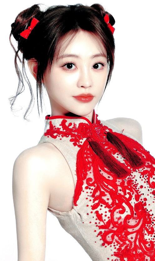 祝绪丹的中式旗袍穿搭加丸子头,这妆造很可爱!