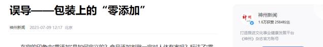 信息来源:神州新闻——误导-包装上的“零添加”,2023年7月3日