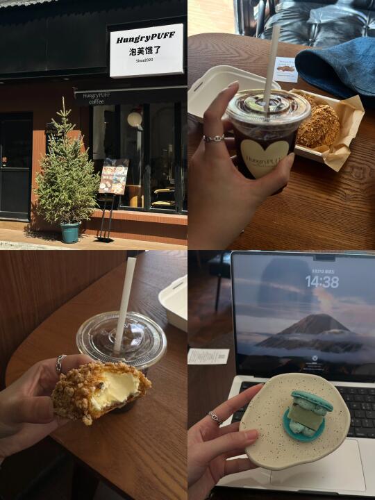 主要是做甜品的一家店招牌是扁桃仁泡芙和各种有特色的马卡龙价格有丢小贵,但是店主姐姐人很好而且很欣慰的是饮品也不拉胯