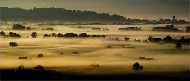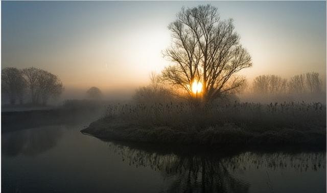 薄雾流形,摄影师站在较高的地方,用长曝光的方式展现出一幅古典的山河画卷。