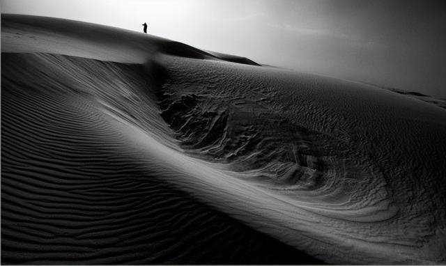 照片的场景是一个荒凉的沙漠,但作者却能构造成一幅沙盘画。